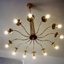 Impressive European Brass Chandelier in the Style of Stilnovo